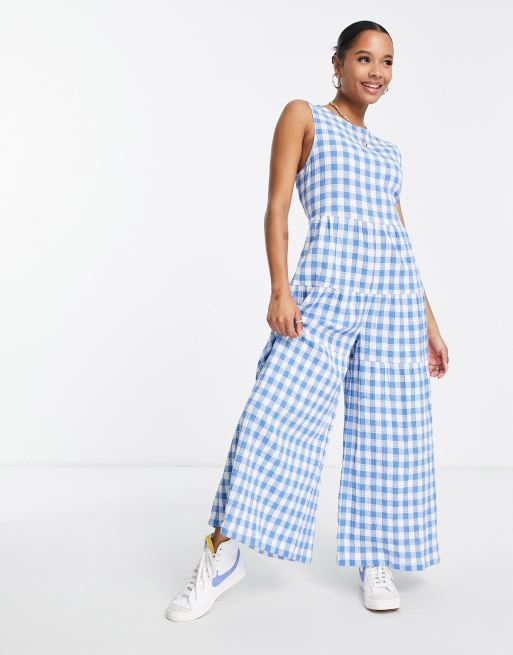 Blue gingham jumpsuit top