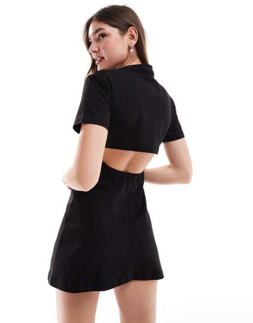 ASOS DESIGN open back a line t shirt mini dress in black Very well made.