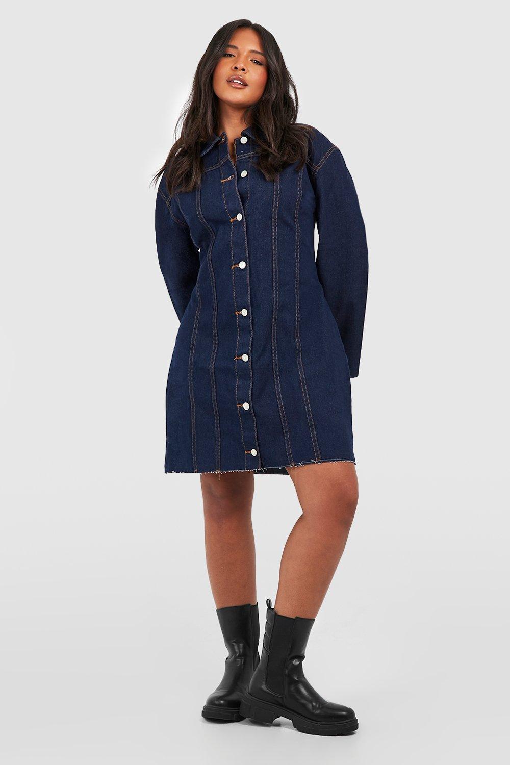 boohoo Plus Raw Hem Denim Shirt Dress Blue Size 12 Very well made.