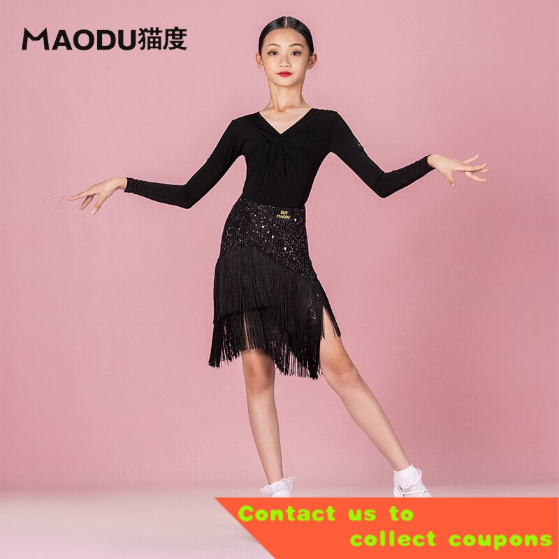 Maodu Children s Dancing Clothes Jumpsuit Autumn Performance Clothes Latin Dance Wear Girls Top Long Sleeve Exercise C Very well made.