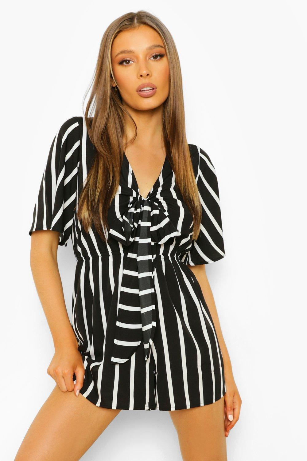 Striped Tie Bust Cut Out Playsuit Very well made.