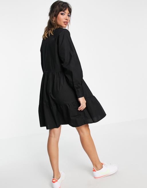 Y.A.S cotton poplin mini smock dress with v neck in black Very well made.