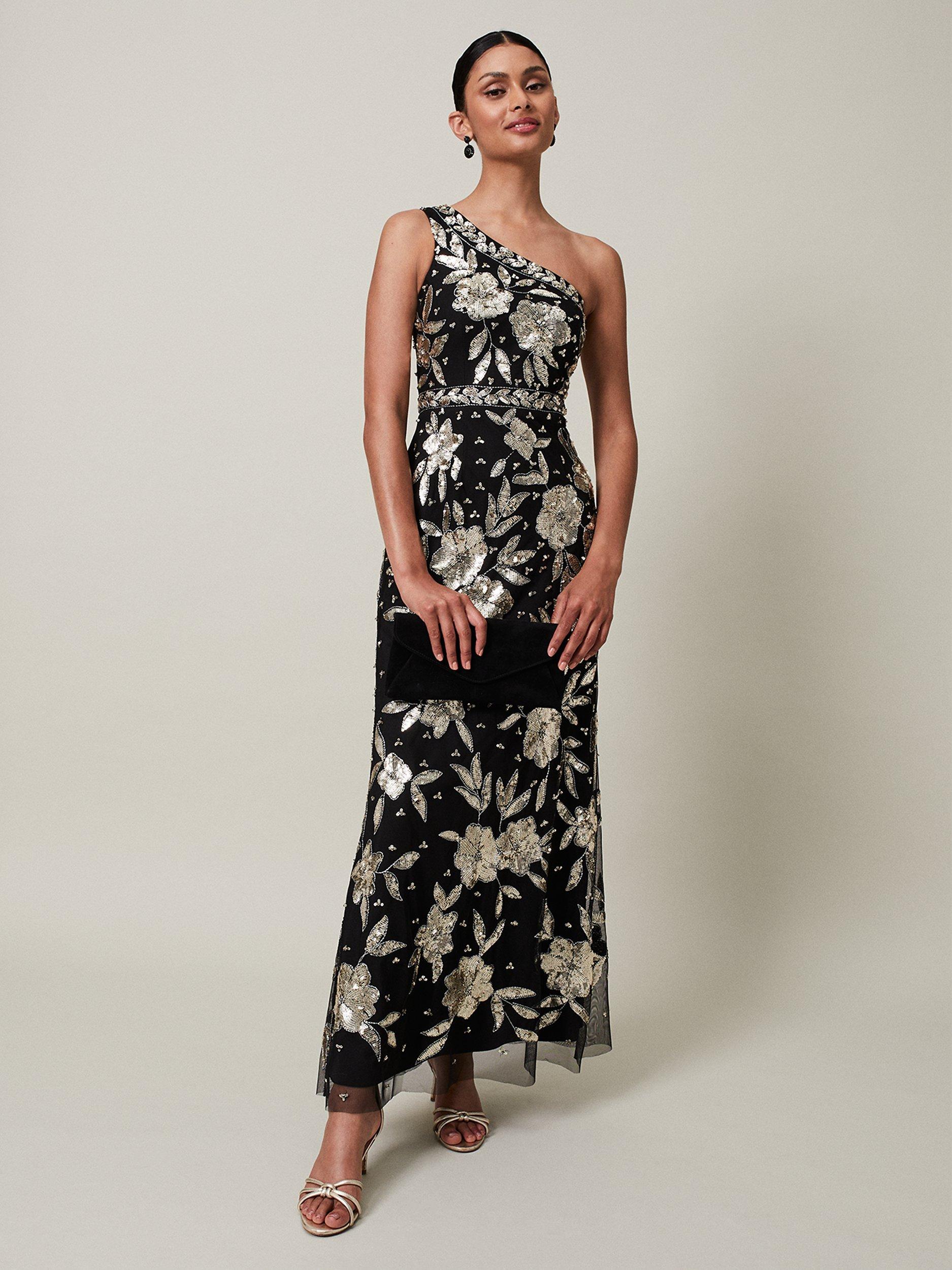 Phase Eight Collection 8 Serafina Floral Sequin Embellished Maxi Dress Black Gold Very well made.