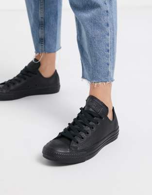 Converse Chuck Taylor All Star Ox black leather monochrome sneakers Very well made.