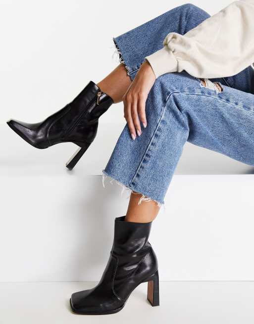 ASOS DESIGN Wide Fit Embrace Bottines en cuir a talon haut et bout carre Noir Very well made.