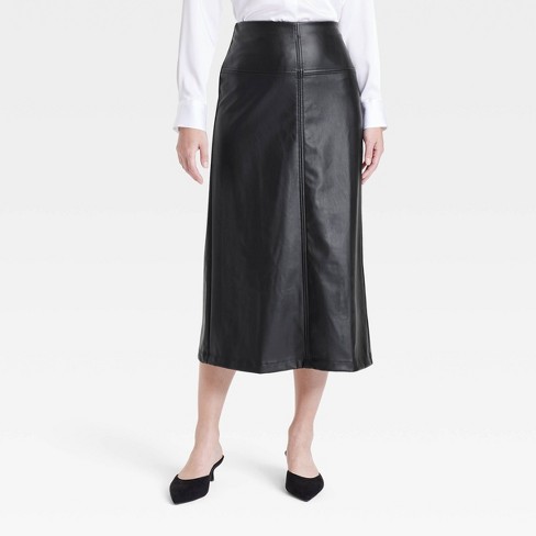 Women s Faux Leather Midi Skirt A New Day Black 6 Target Very well made.