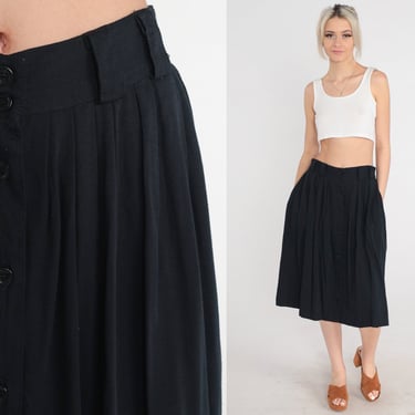Vintage Black Midi Pleated Skirt Size L 80s Black a Line Skirt Pleated Drop Waist Skirt Office Style 80s Black Secretary Skirt 33 Waist Etsy Very well made.