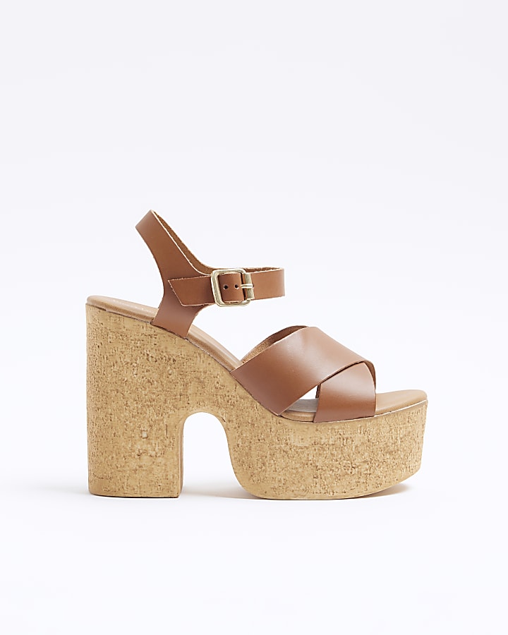 Brown leather platform heeled sandals River Island Very well made.