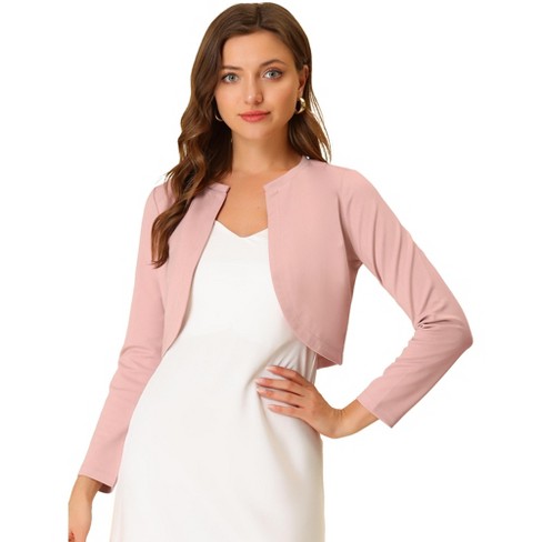 Allegra K Women s Solid Open Front Curved Hem Stretchy Fabric Crop Bolero Shrug Pink X large Target Very well made.