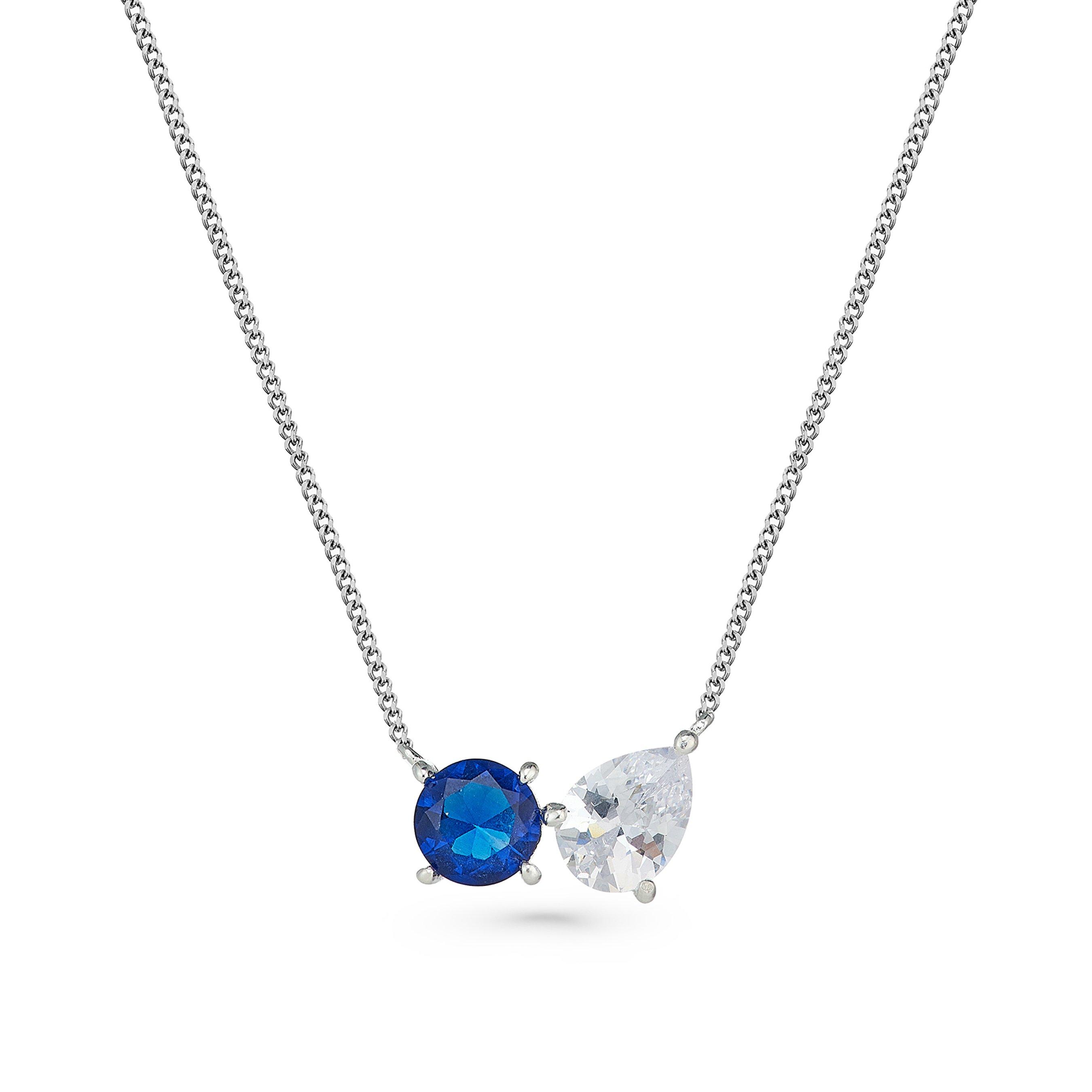 Emporio Armani Silver Blue Gem Cubic Zirconia Necklace Ernest Very well made.