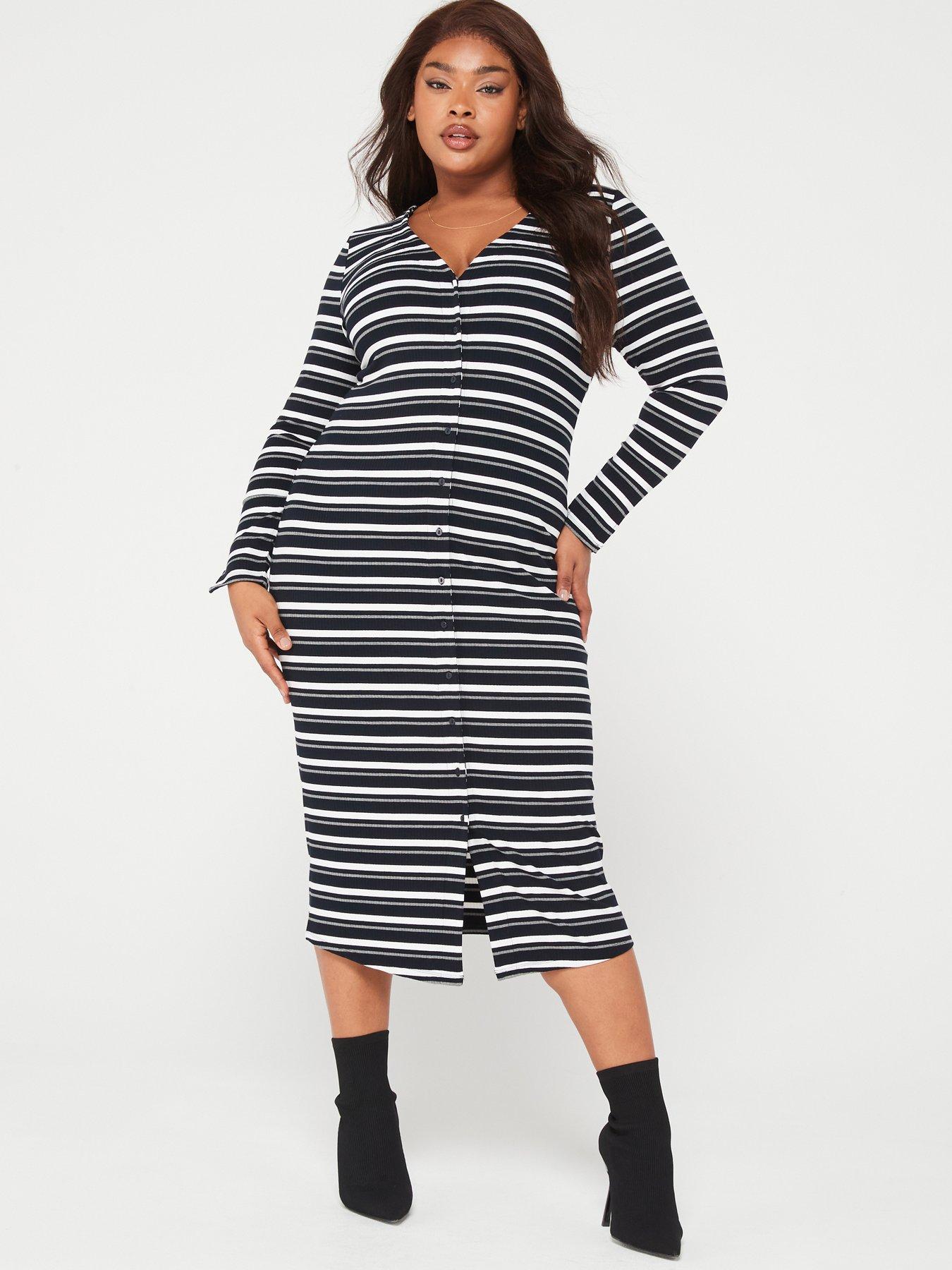 V by Very Curve Jersey Rib Button Through Stripe Midi Dress Very well made.