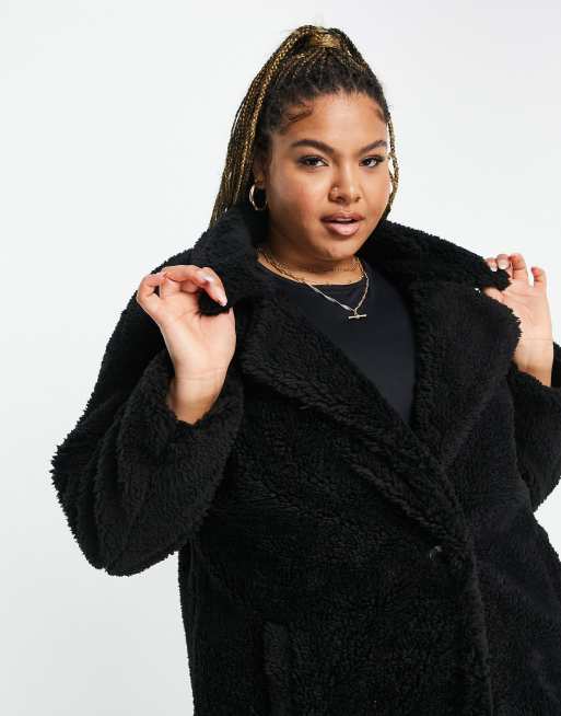 Plus Black Teddy Bear Borg Coat PrettyLittleThing KSA Very well made.