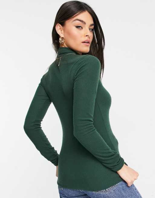 River Island long sleeve brushed high neck top in dark green Very well made.
