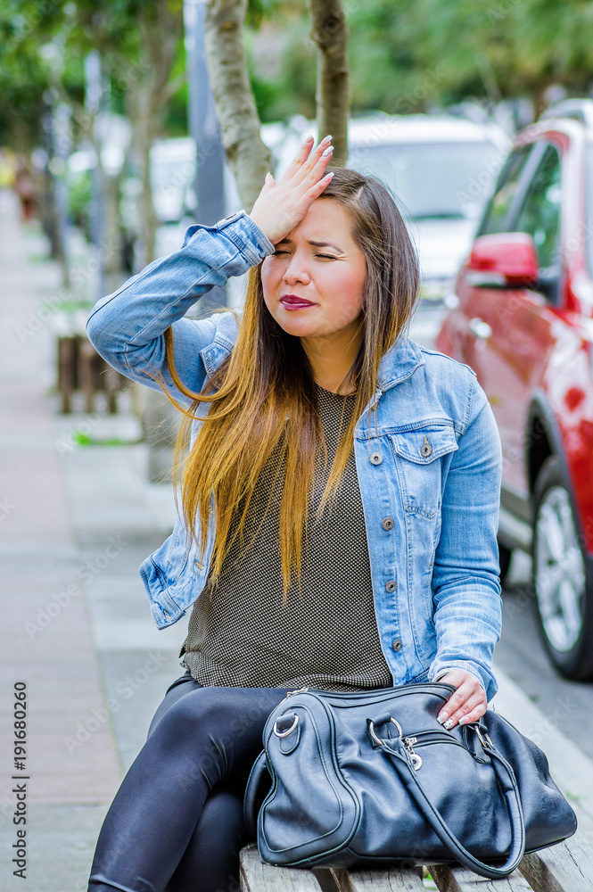 Fashion trendy casual young woman wearing a jean jacket and black Very well made.