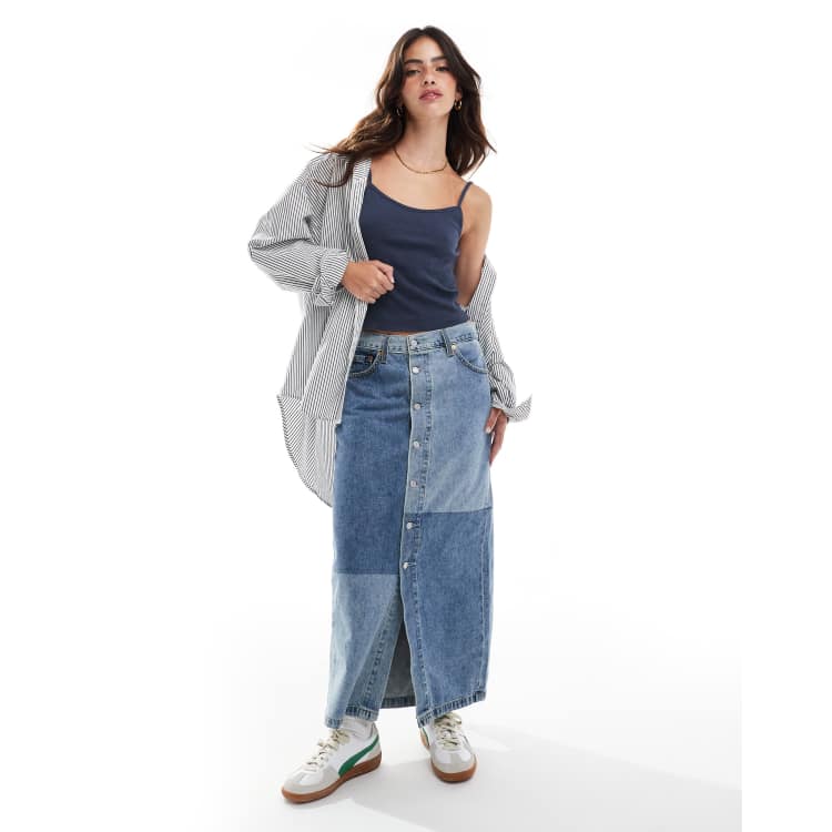 Levi s button front midi skirt in mid wash blue ASOS Very well made.