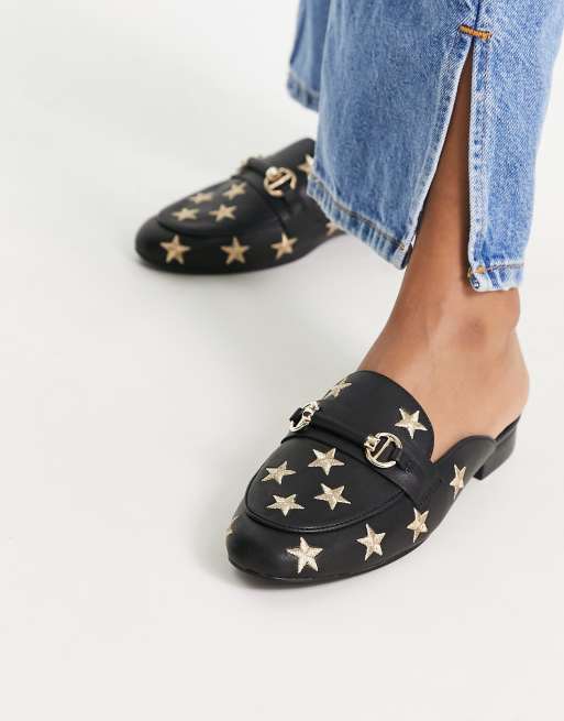 DUNE LONDON Gravitate Leather Star Embroidered Snaffle Loafers Black Very well made.