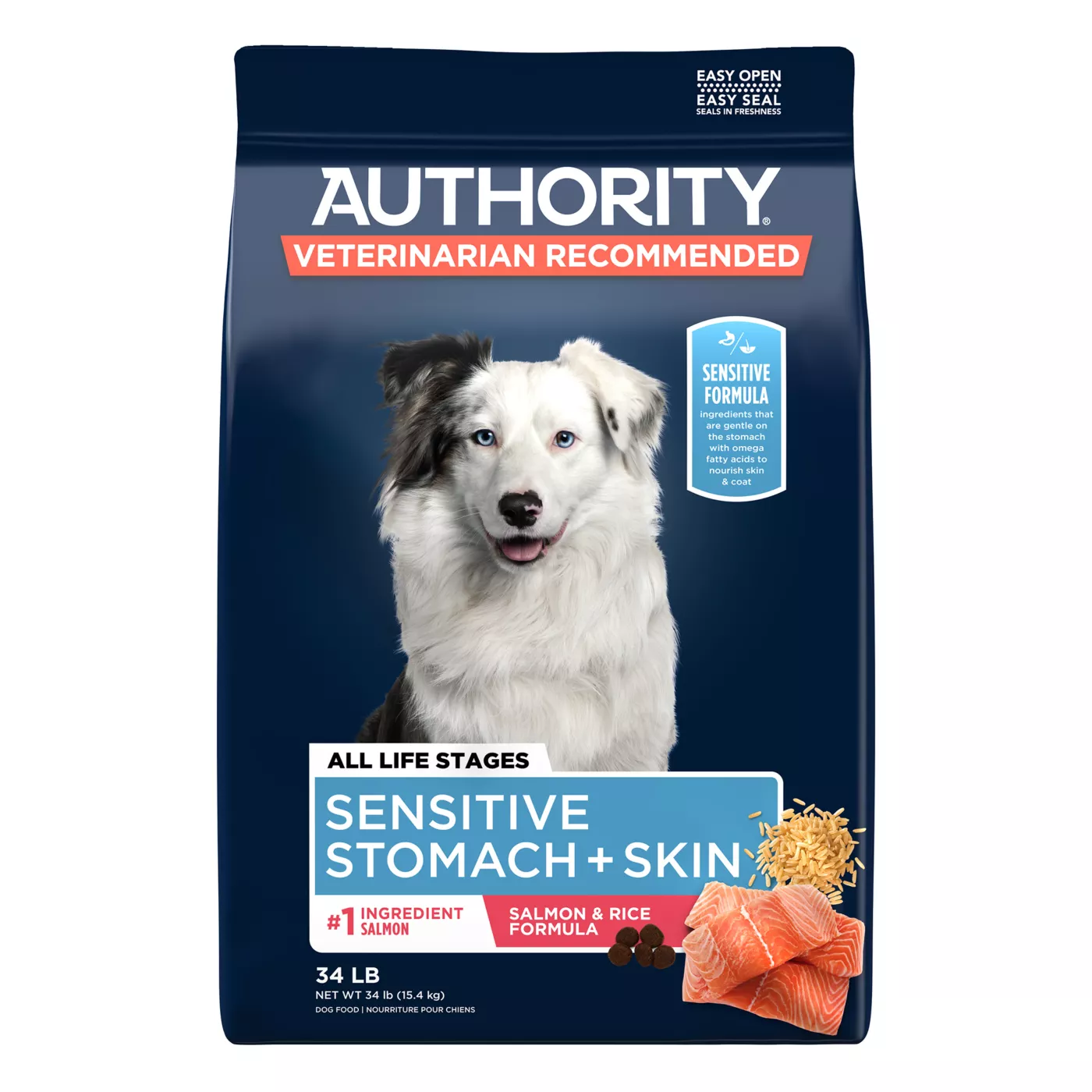 Authority Sensitive Stomach Skin All Life Stages Dry Dog Food Salmon Rice Very well made.