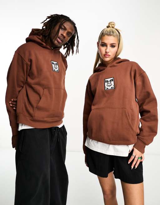 Obey Felpa con cappuccio unisex pesante marrone con logo Very well made.