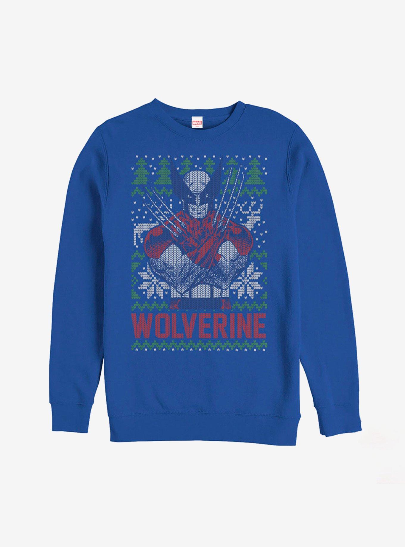 Marvel Men s Ugly Christmas X Men Wolverine Sweatshirt Blue Very well made.