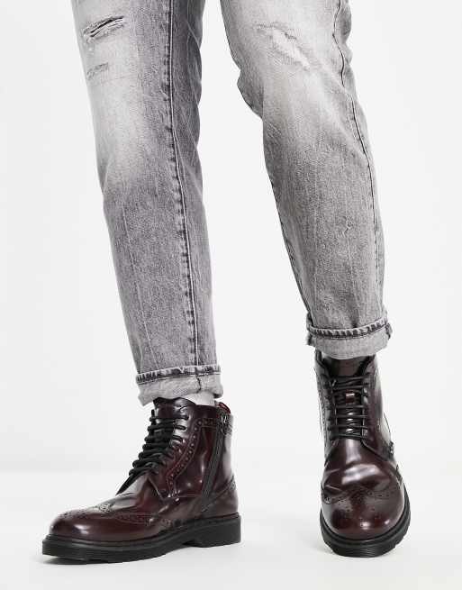 Ben Sherman leather chunky brogue boots in burgundy Very well made.