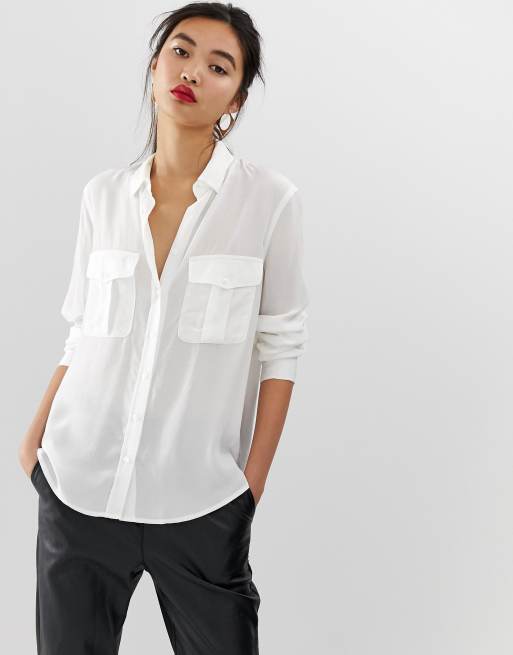 Camisa blanca con detalle de bolsillos de Mango Very well made.