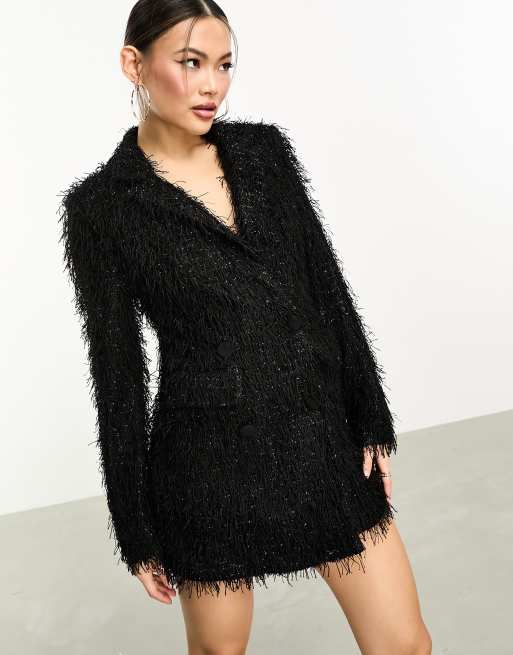 ASOS DESIGN fluffy blazer romper in black Very well made.