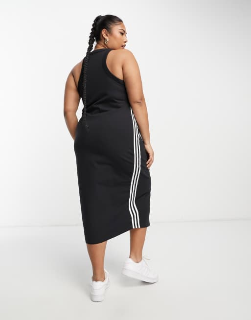 adidas Originals Plus three stripe sleeveless midi dress in black Very well made.