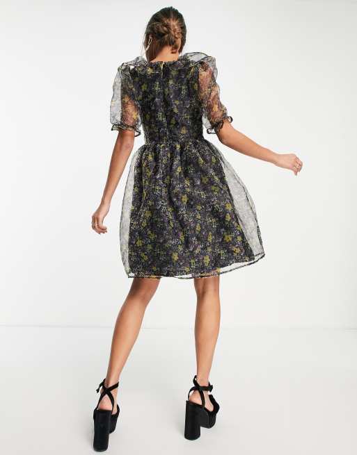 Vestido corto negro con estampado de flores y manga abullonada de Very well made.