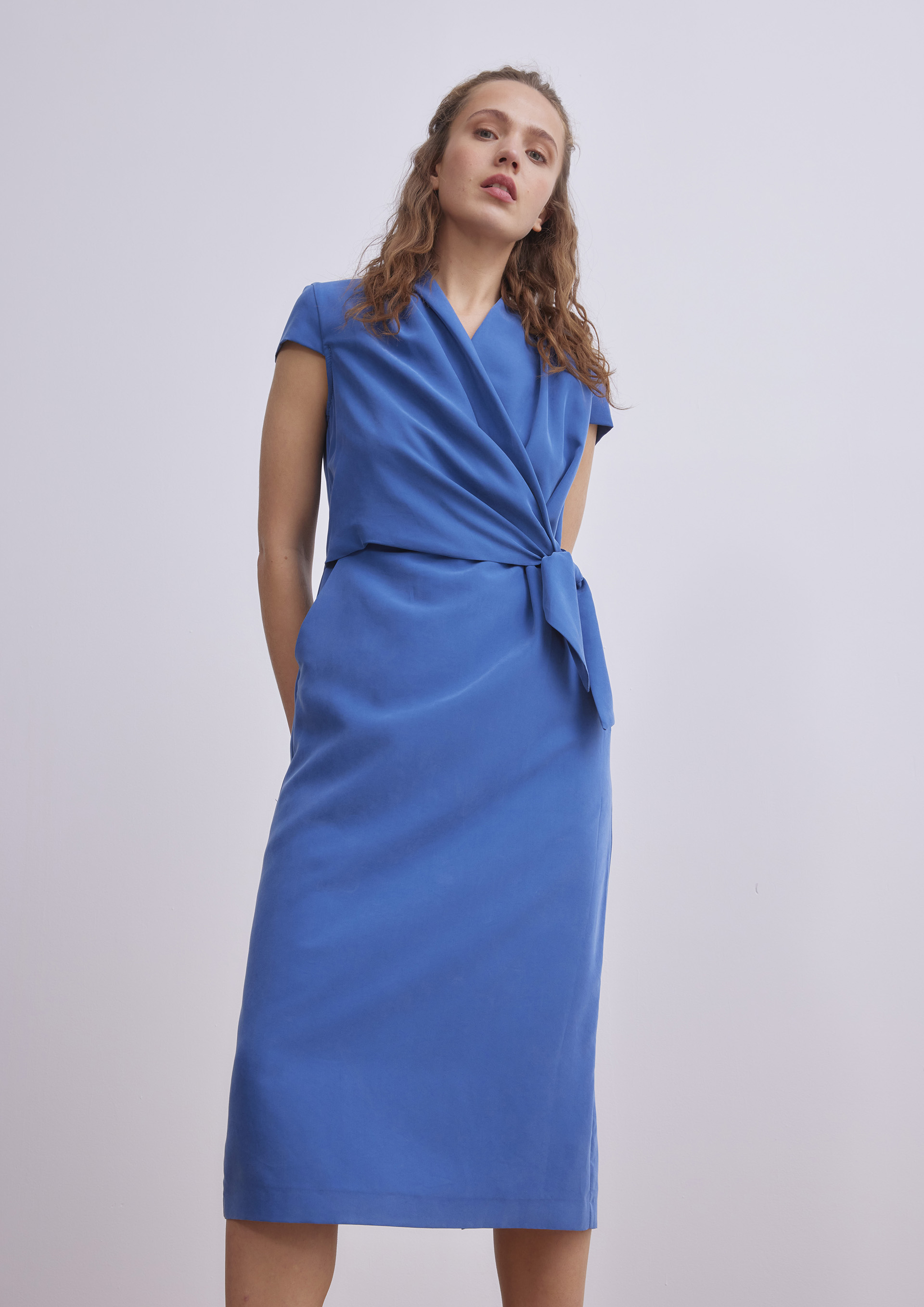 Vestido azul con lazada en cintura Very well made.