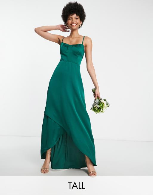 Vestido de dama de honor verde esmeralda de tirantes de sat n de TFNC Tall Very well made.