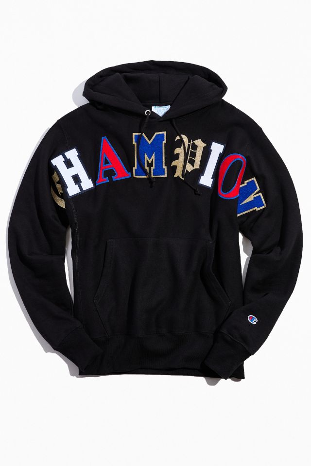 Champion Old English Patchwork Hoodie Sweatshirt Very well made.
