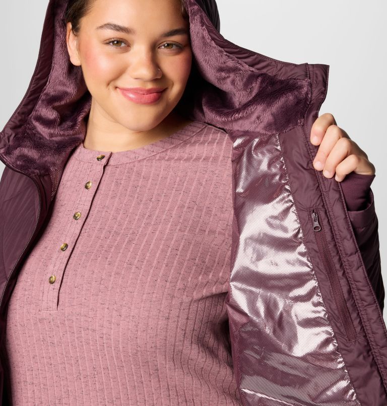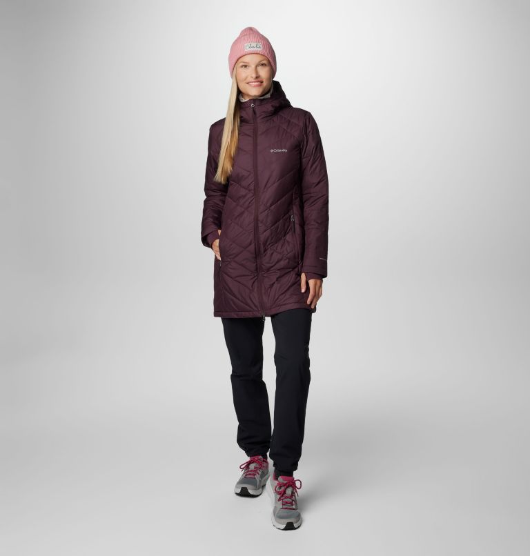 Columbia women s heavenly long cheap hooded jacket dark plum Very well made.