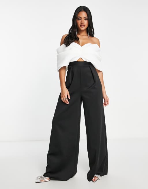 ASOS DESIGN wrap tie jumpsuit in mono polka dot Very well made.