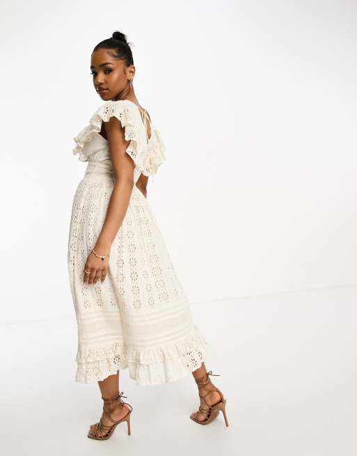 Miss Selfridge broderie frill detail midi dress in cream ASOS Very well made.