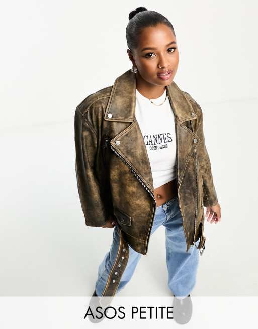 Chaqueta biker marron extragrande con acabado lavado de cuero autentico premium de ClassicfuncenterShops DESIGN Petite ClassicfuncenterShops Very well made.