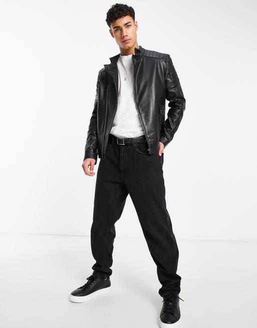 French Connection leather biker jacket in black Very well made.