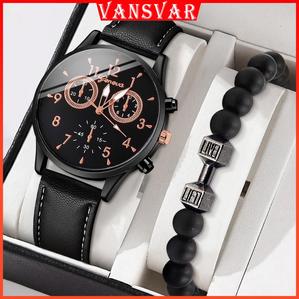 Geneva Men Watch Bracelet Set Business Casual Leather Band Man Quartz Watches Very well made.