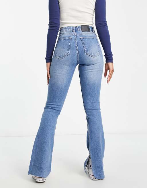 Pull Bear high waisted split hem flare jean in medium blue Very well made.
