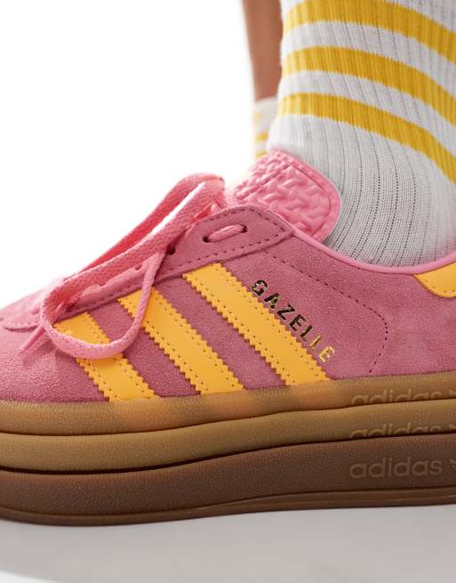 adidas Originals Gazelle Baskets a semelle en caoutchouc Rose et jaune vif Very well made.