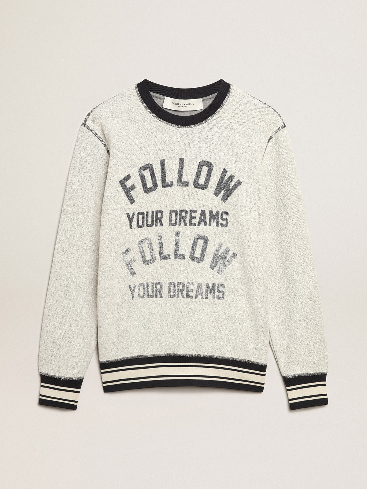 Gray round neck sweatshirt with lettering Very well made.