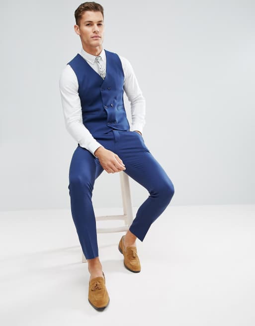 ASOS Wedding Skinny Suit Vest in Blue Cross Hatch with Printed Very well made.