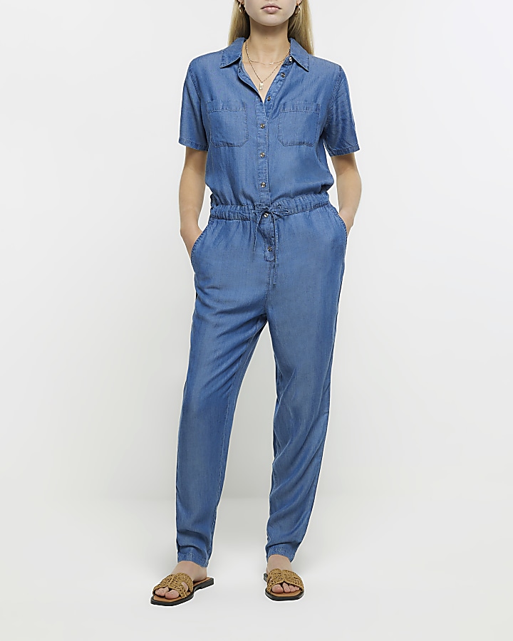 Blue zip up denim jumpsuit River Island Very well made.