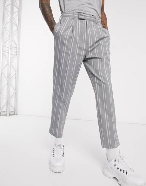 ASOS DESIGN smart tapered pants in grey stripe Very well made.