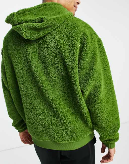ASOS DESIGN oversized hoodie in deep green teddy borg with funnel neck Very well made.