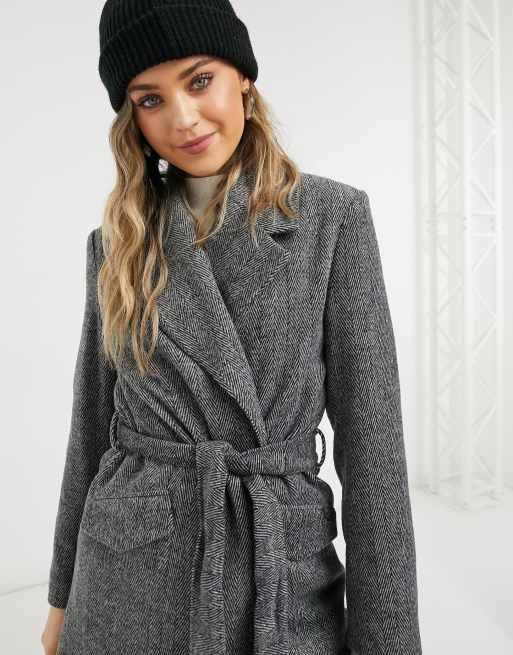 Bershka tie waist tailored coat in grey ASOS Very well made.