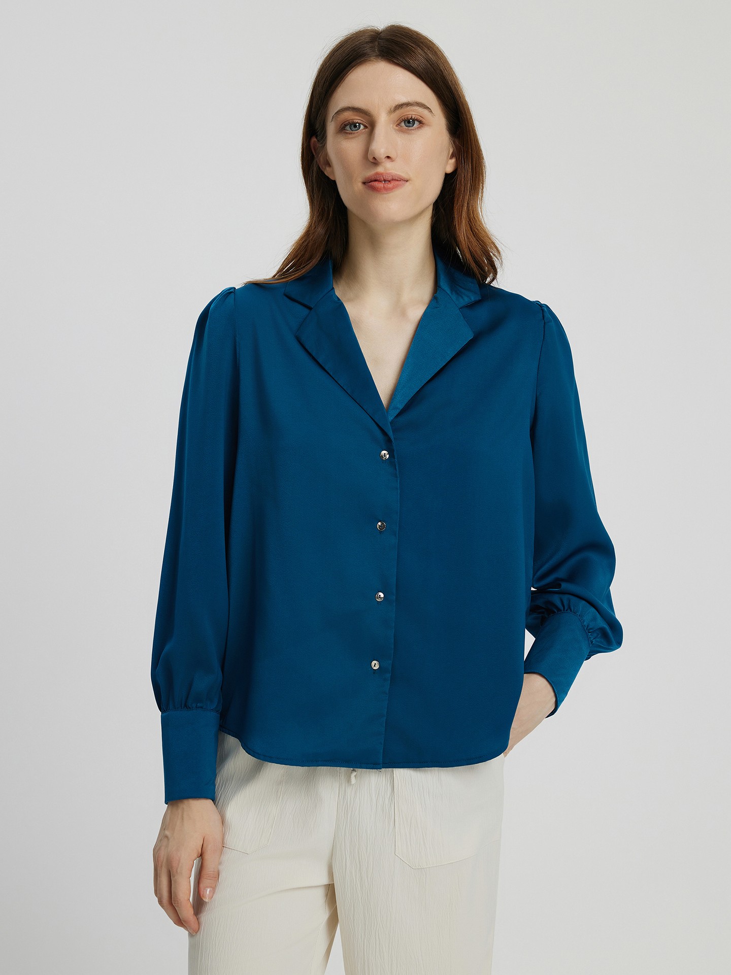 Blusa de manga larga con encaje en contraste de cuello v profundo Very well made.