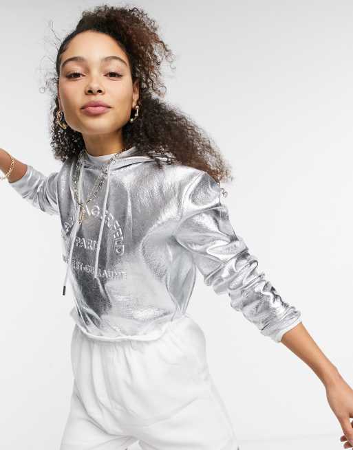 Sudadera plateada con capucha y logo en la parte delantera de Karl Lagerfeld Very well made.