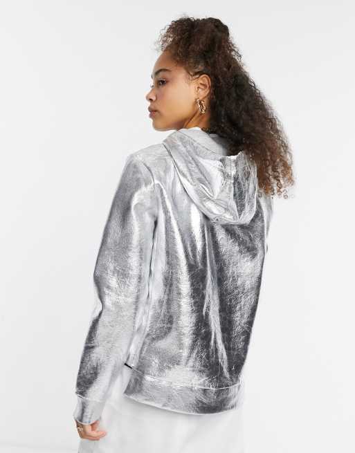 Sudadera de PU met lica plateada para mujer sudaderas con capucha de manga larga Tops brillantes Grunge High Street Punk purpurina traje de Very well made.