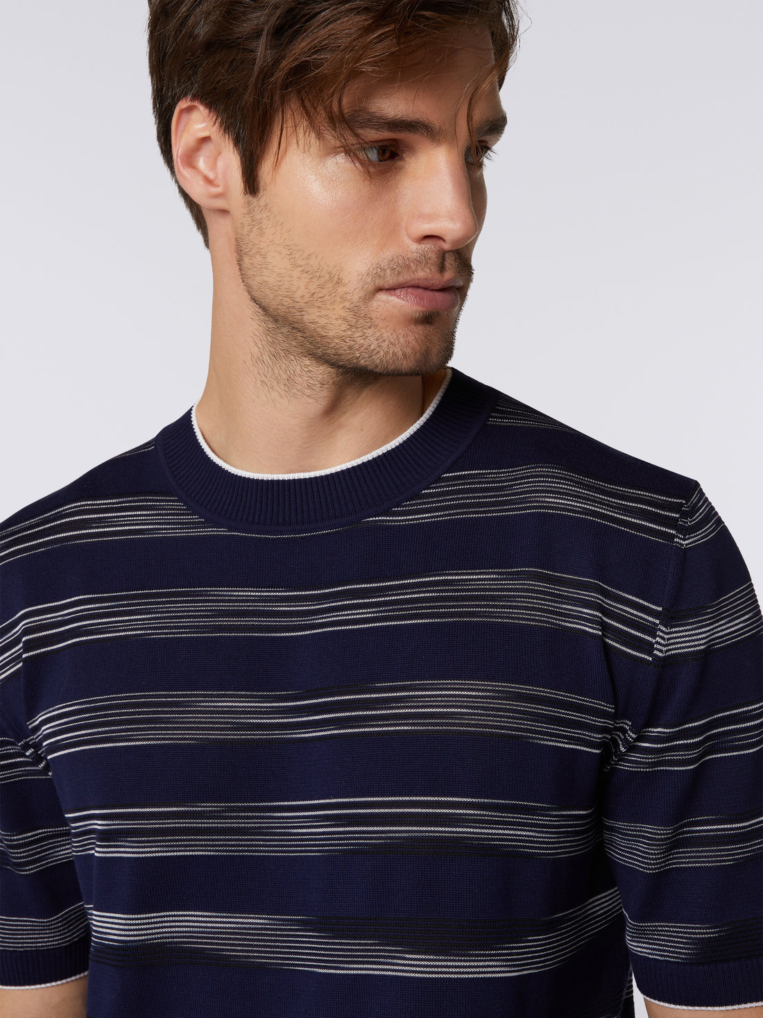 Camiseta de cuello redondo de algod n y viscosa a rayas Blanco Very well made.