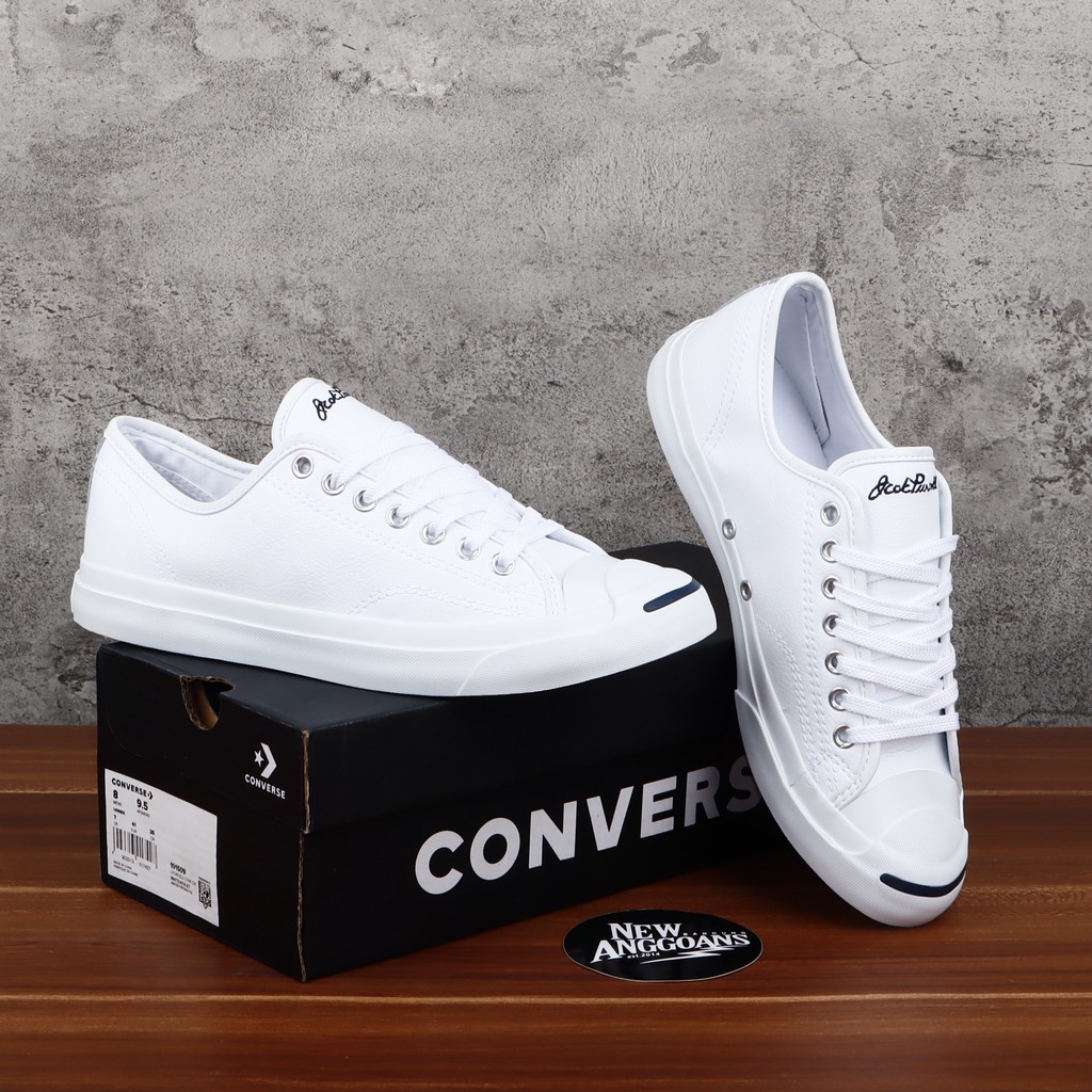 PUTIH Bonus Socks paperbag Converse All Star Jack Purcell Full White White Leather Low Leather Very well made.